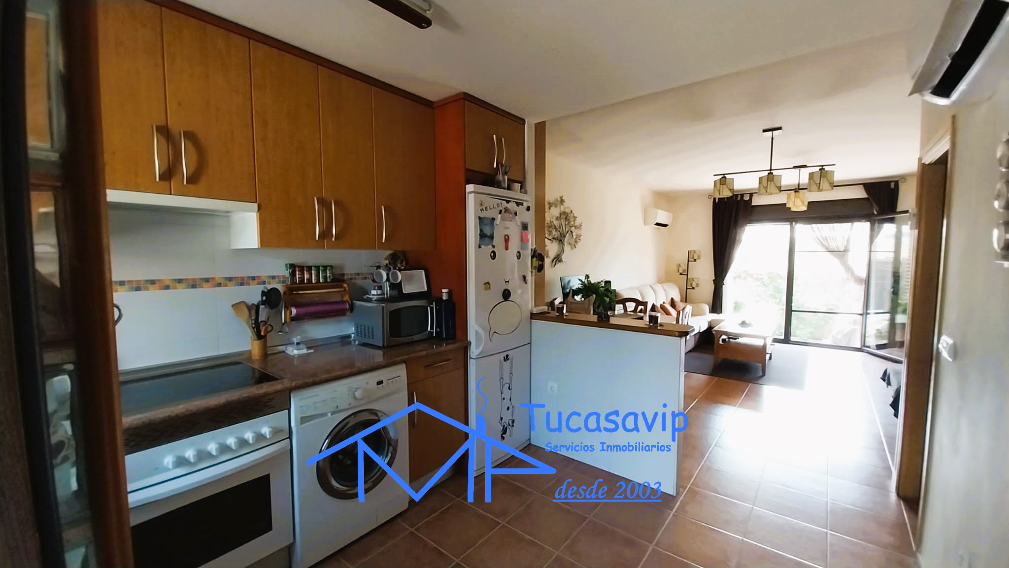 Dispone de dos amplios dormitorios con armarios empotrados y dos baños, además de un luminoso salón con chimenea y tirador, perfecto para crear un ambiente acogedor. La cocina, práctica y bien distribuida, se integra de manera armónica en la vivienda.